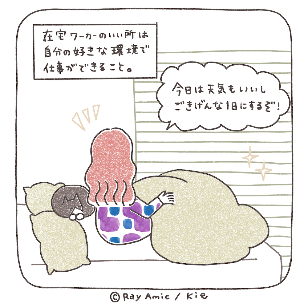 在宅になると何が辛いかって、やっぱり環境。例えば部屋が汚かったりするとやる気が出なかったり、皿洗いとか洗濯物とか、やってない家事が目について気が散っちゃうことも。